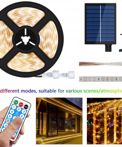 Cinta LED solar Luz Calida con 8 modos de funcionamiento para uso en exteriores: