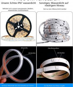 Tira LED de 5m de largo con 300 bombillas LED 2835, con un ángulo de visión constante de 360 grados que se ilumina en todas las direcciones.