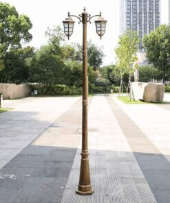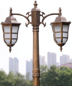 Este poste de dos faroles está diseñado para iluminación exterior durante todo el año con una luz eficiente y establer, sin necesidad de preocuparse por los días nublados o lluviosos.