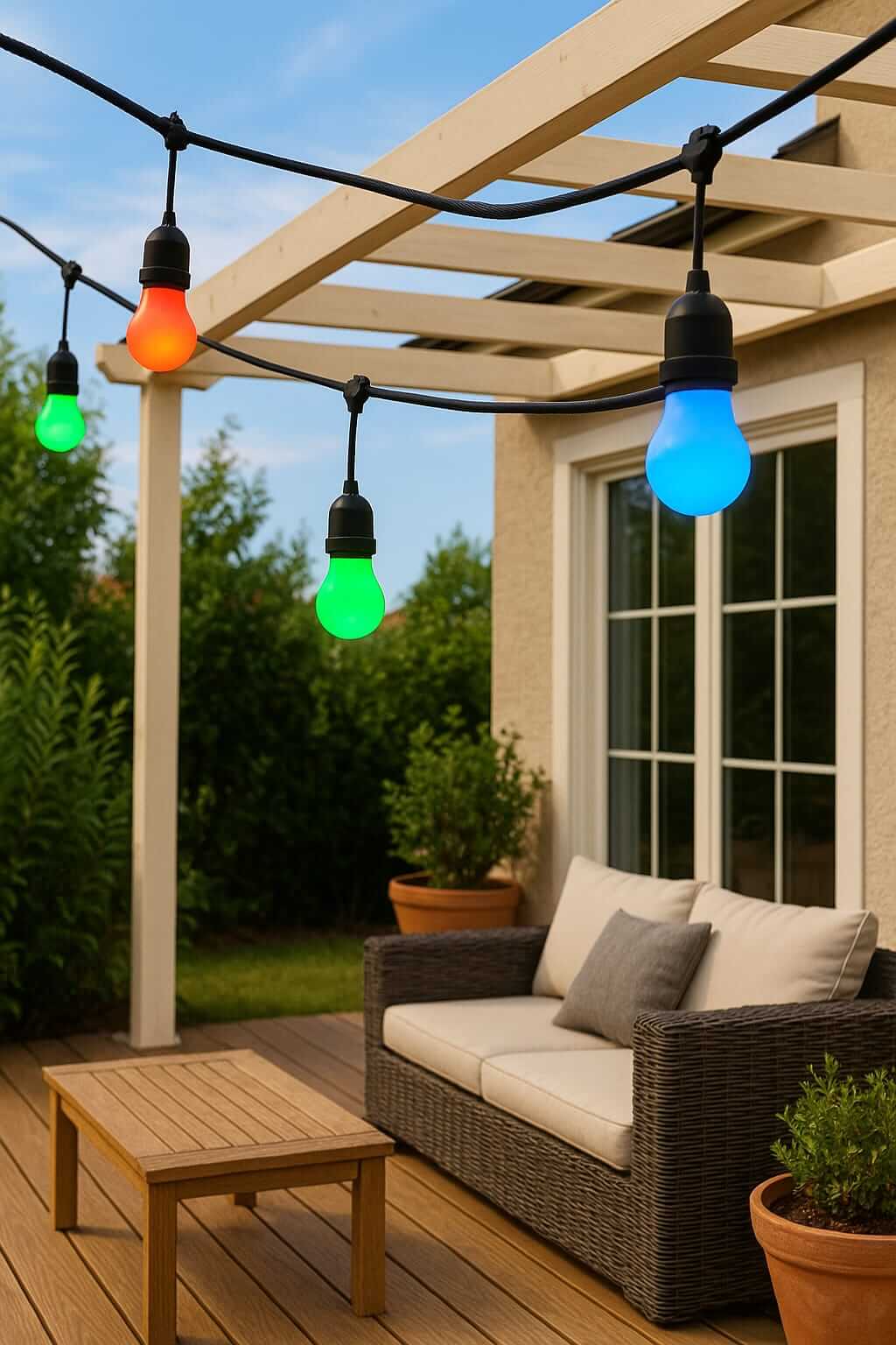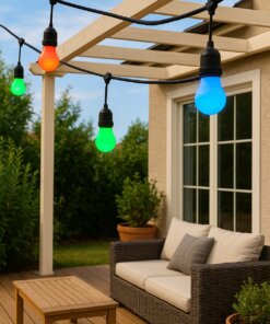 Con su soquete estándar E27, es compatible con la mayoría de lámparas y portalámparas. Incluye un control remoto multifunción, que permite cambiar colores, ajustar el brillo, activar modos especiales (flash, fade, strobe, smooth) y alternar entre luz blanca y luz RGB.