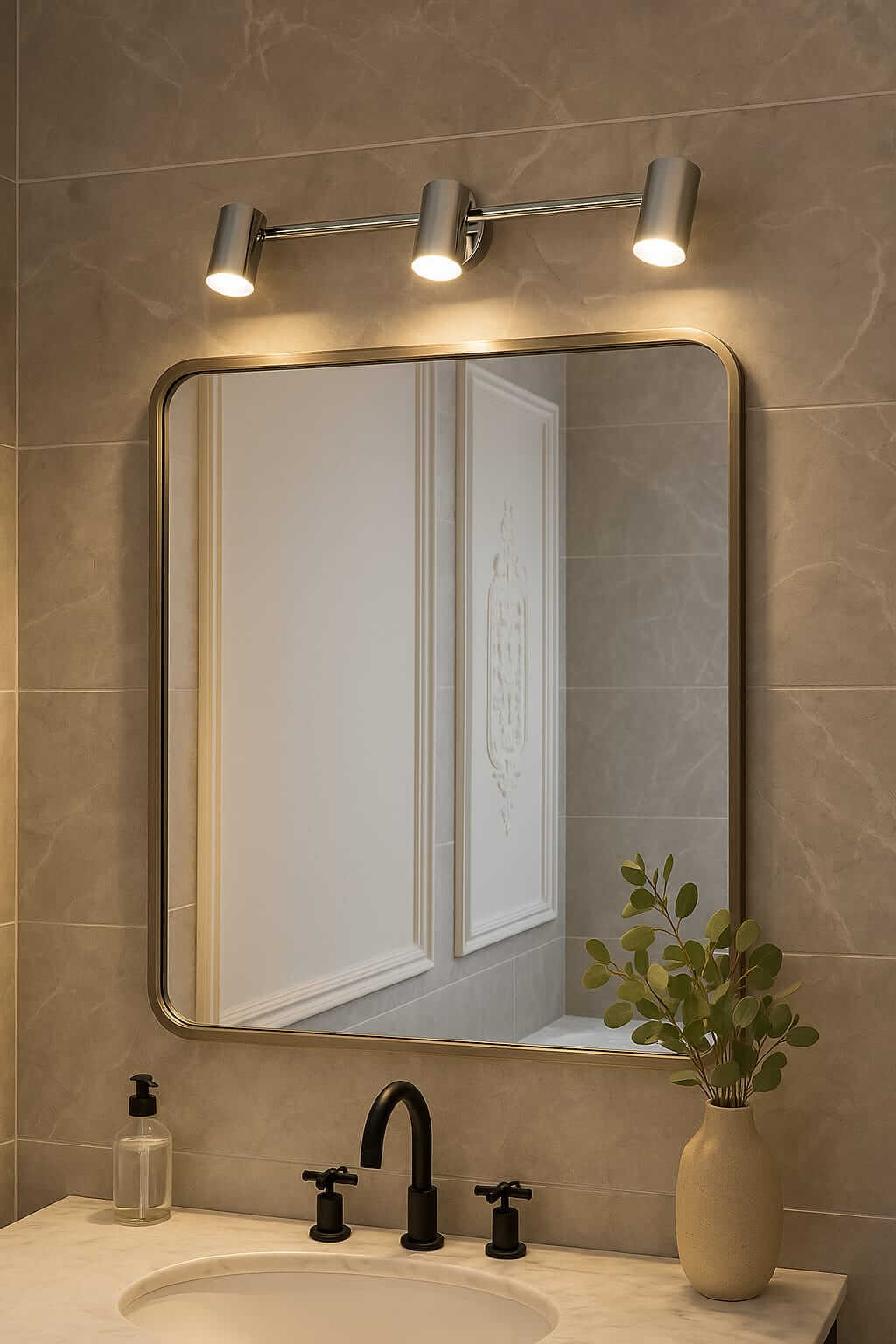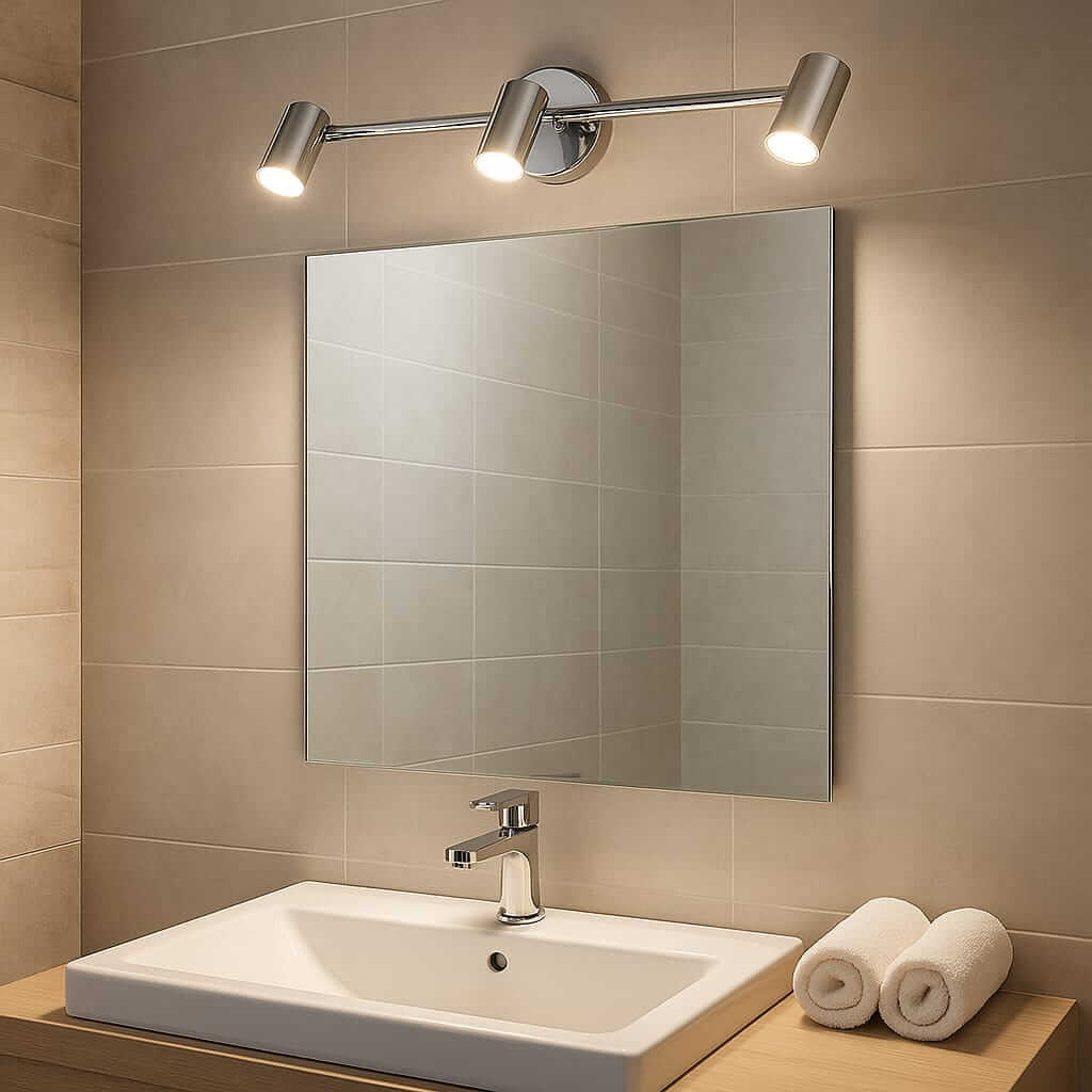 Su diseño moderno, minimalista y altamente funcional permite orientar cada luz de manera independiente, logrando una iluminación focalizada ideal para baños, pasillos, dormitorios, salas de estar y espejos de tocador.