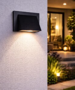 Cuenta con un formato compacto de 12 cm de ancho, 7 cm de alto y 10 cm de profundidad, lo que lo hace perfecto para pasillos, fachadas, entradas y espacios donde se busca una luz dirigida sin ocupar mucho espacio. Su estructura proyecta la luz de forma frontal y controlada, generando un efecto visual elegante y contemporáneo.
