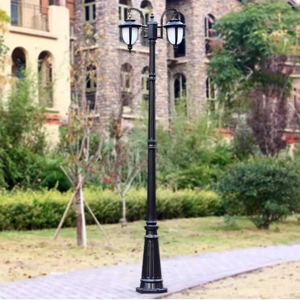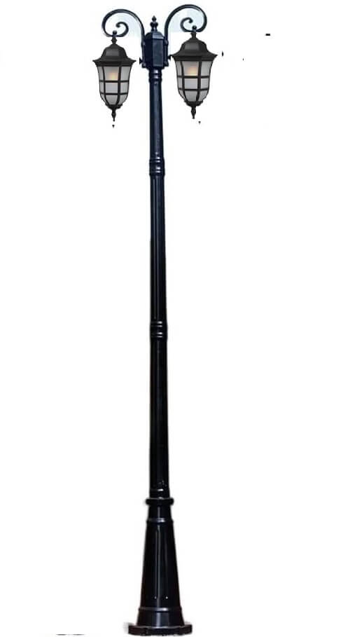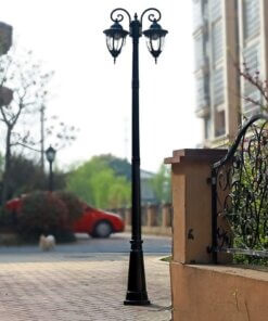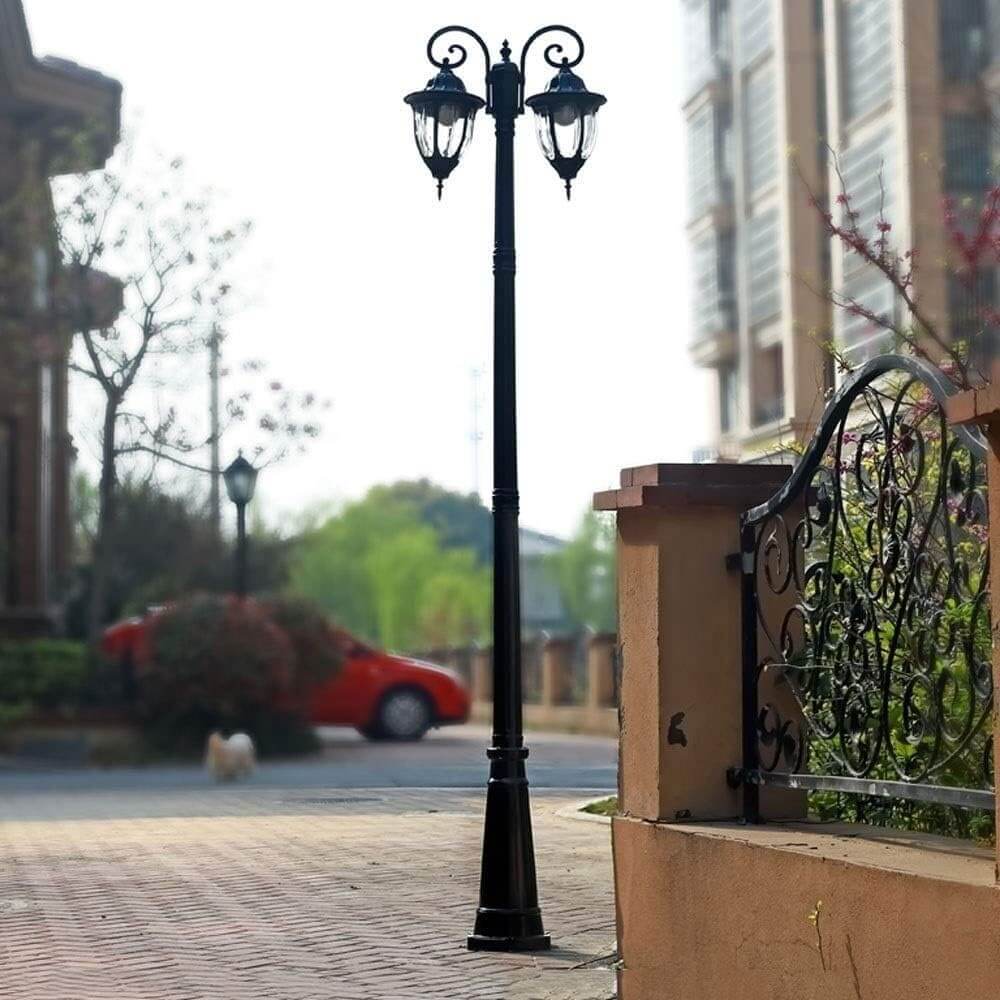 Este poste de dos faroles está diseñado para iluminación exterior durante todo el año con una luz eficiente y establer, sin necesidad de preocuparse por los días nublados o lluviosos.