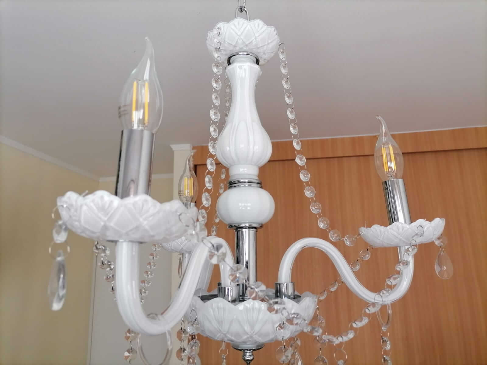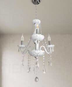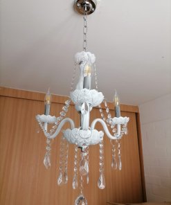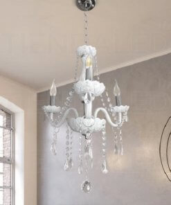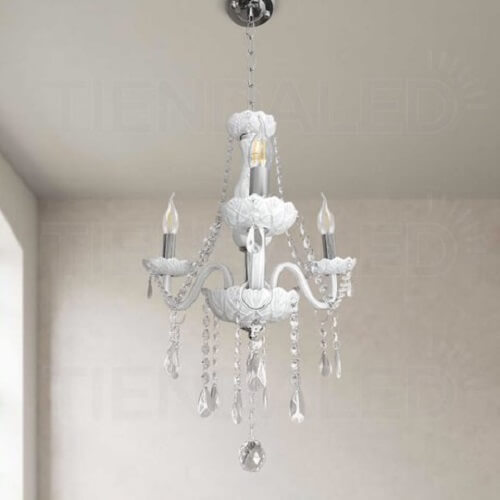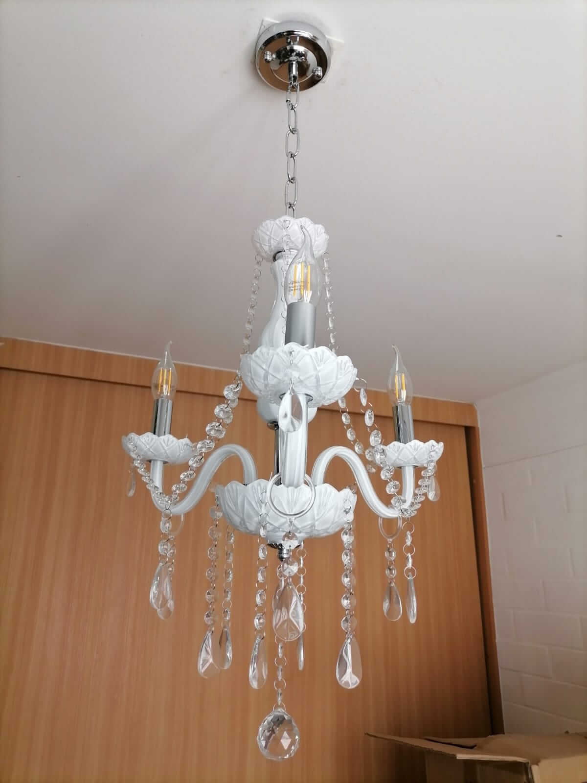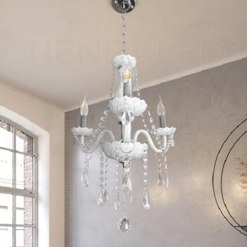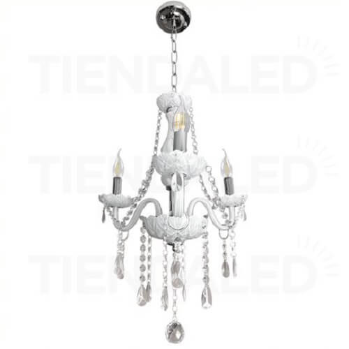 Lampara colgante candelabro Blanca modelo lagrimas de cristal de 3 Soquetes