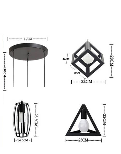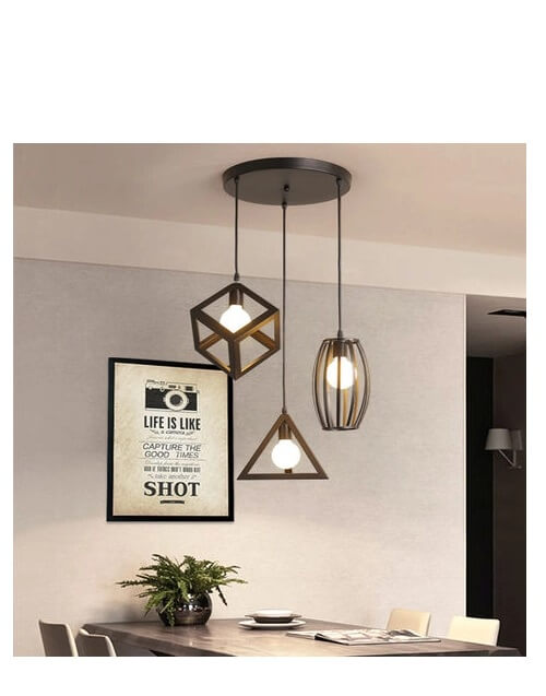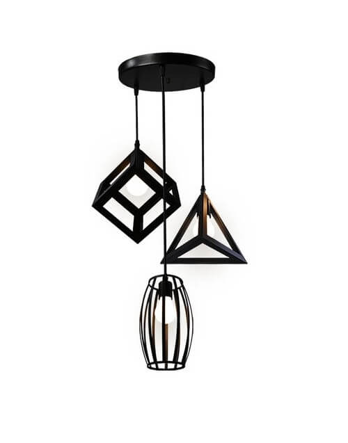 Lampara Vintage 3 Figuras Geometricas con ampolletas led filamento Incluidas