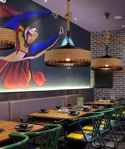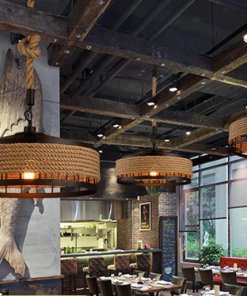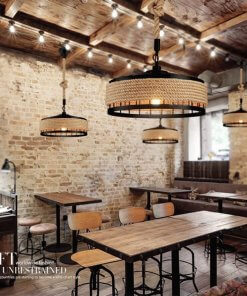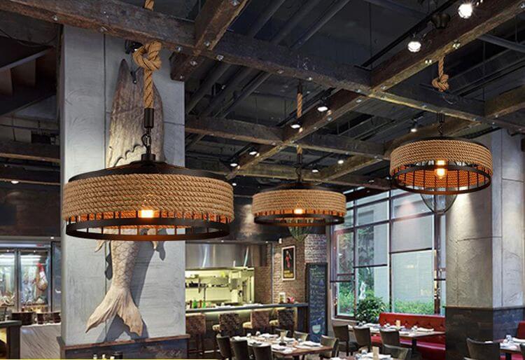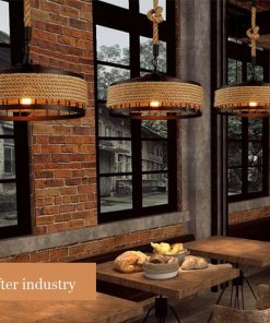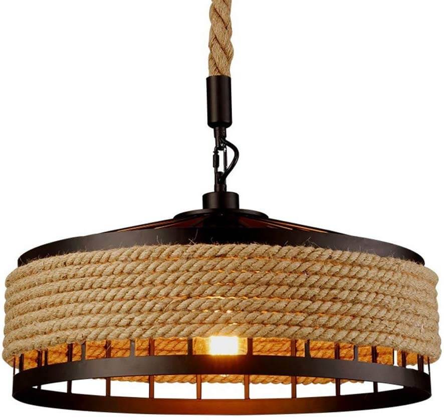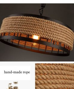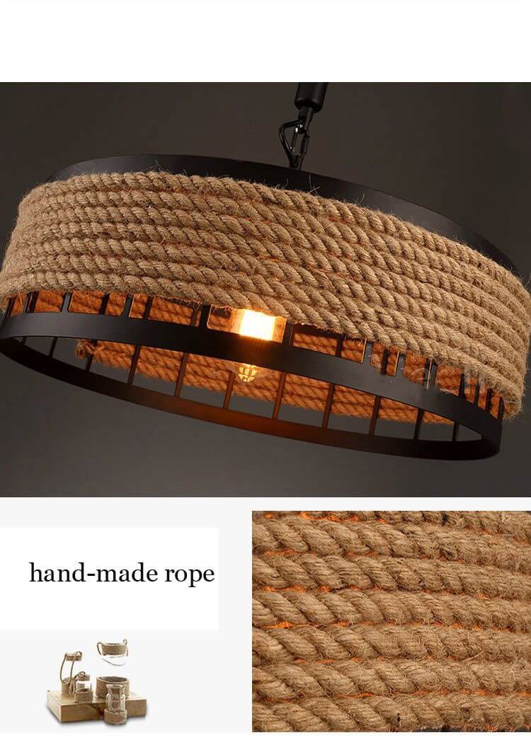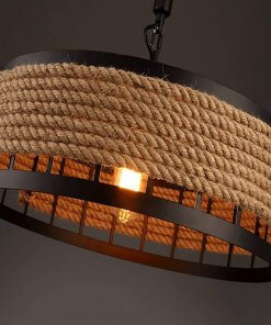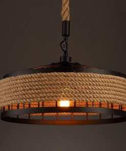 Lampara Colgante Retro Metalica, forrada en cañamo