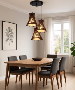 Uso recomendado: Interior (comedor, sala de estar, restaurante, bar, oficina). Ventajas: Diseño moderno con toque artesanal. Iluminación cálida y difusa. Ideal para crear ambientes acogedores. Fabricada con materiales duraderos y fáciles de mantener.