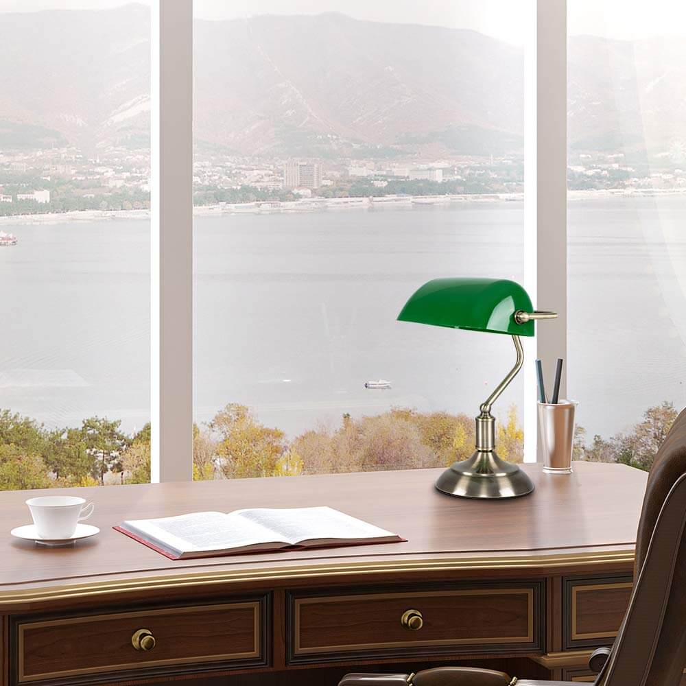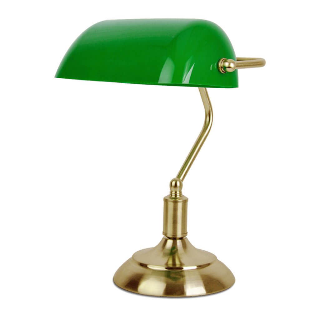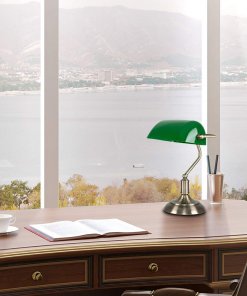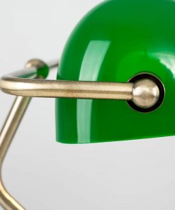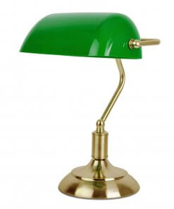 Lámpara de sobremesa de estilo escritorio de banquero con acabado de efecto latón antiguo – con una pantalla verde que filtra la luz