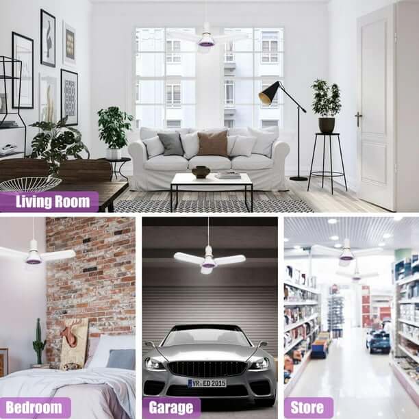 Su diseño plegable de 3 paletas abatibles permite ajustar el ángulo de luz para obtener una mejor cobertura en interiores o exteriores techados.