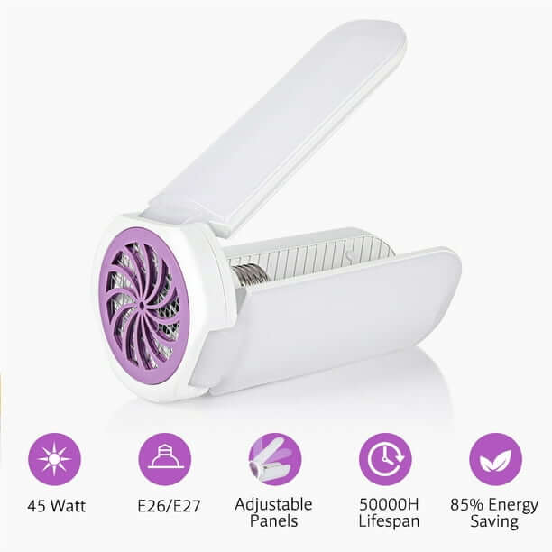 La Lámpara LED Mosquito Killer 45W combina iluminación potente con un sistema integrado para eliminar mosquitos mediante luz UV de alta atracción.