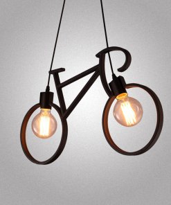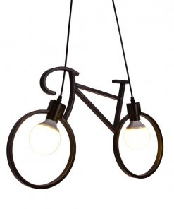 Hermosa lampara e forma de biciclieta en estructura de fierro