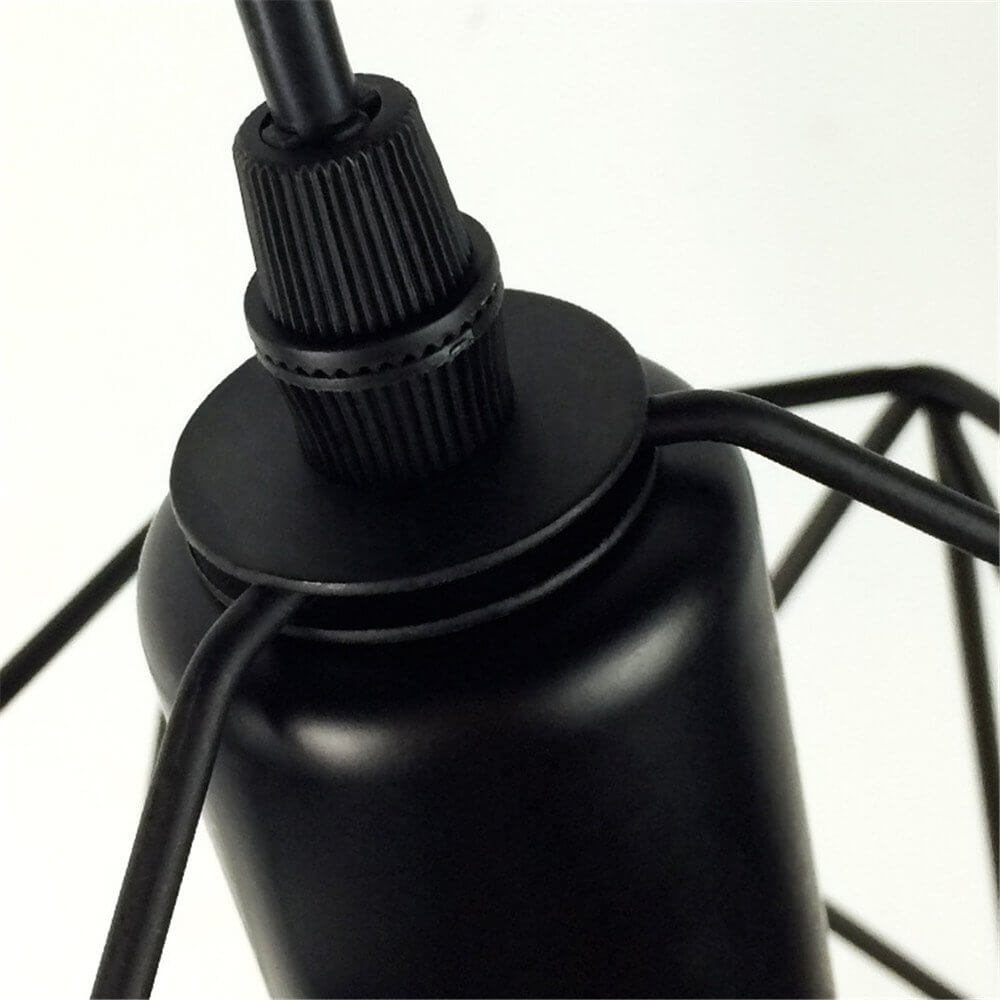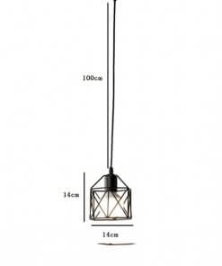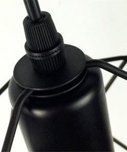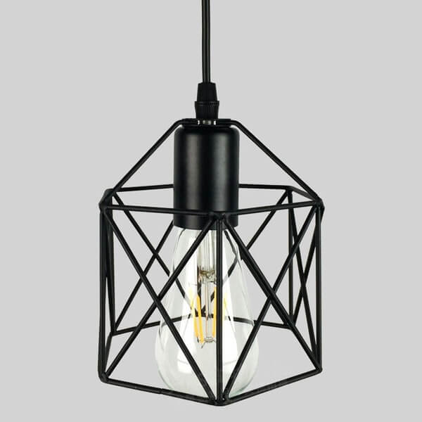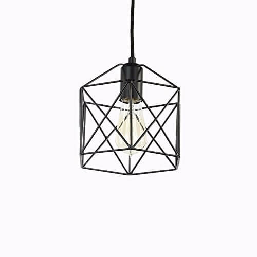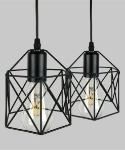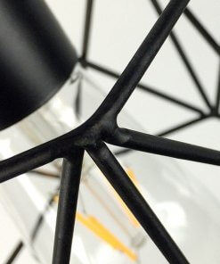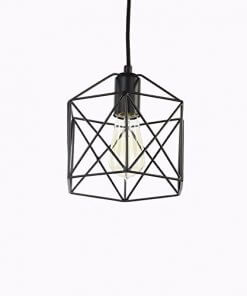 Lampara fabricada en hierro de color negro y forma geometrica.